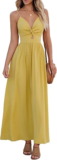Women's Maxi Dress V Neck Twisted Sleeveless Cutout Self Tie Long Dress Summer Formal Dress