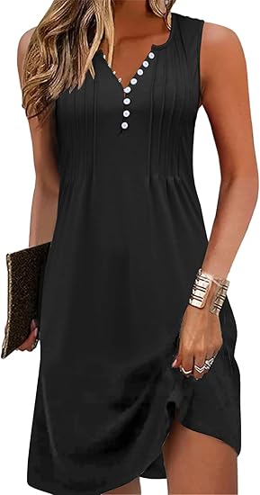 Womens Summer Dresses 2024 Sleeveless Button Down Smocked Elastic Waist Ruffle Tiered Casual Swing Mini Dress