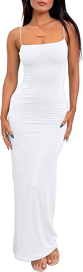 Womens Summer Casual Slip Dresses Spaghetti Strap Bodycon Maxi Dress
