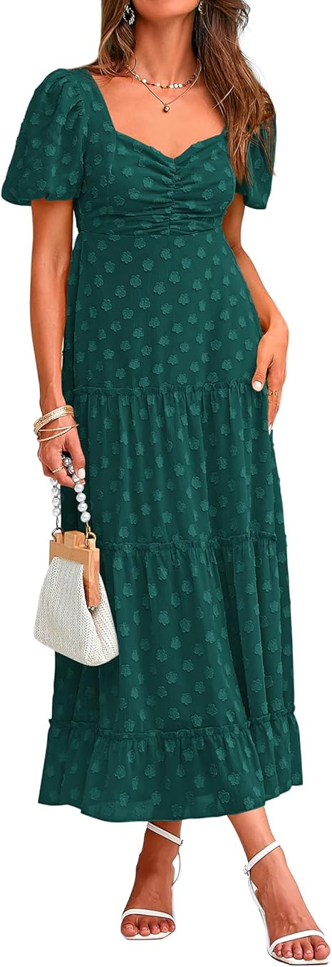 Women's Summer Floral Dresses 2024 Casual Short Sleeve Square Neck Ruffle Long Beach Dress Loose Fit Boho Dress