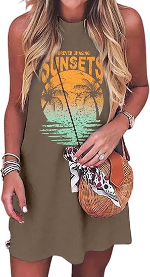 Summer Sundress for Women Graphic Mini Tank Dress Sleeveless Beach Dresses Short Casual Sun Dresses
