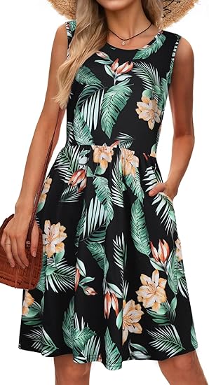 Summer Dresses for Women Casual Sleeveless Tshirt Beach Flowy Tank Sundresses with Pockets